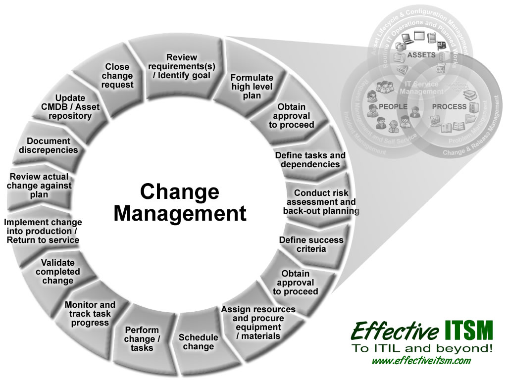 Change Management Process - The process of moving from a current state to a desired state whilst avoiding the attentions of Mr Cock-Up and his chums
